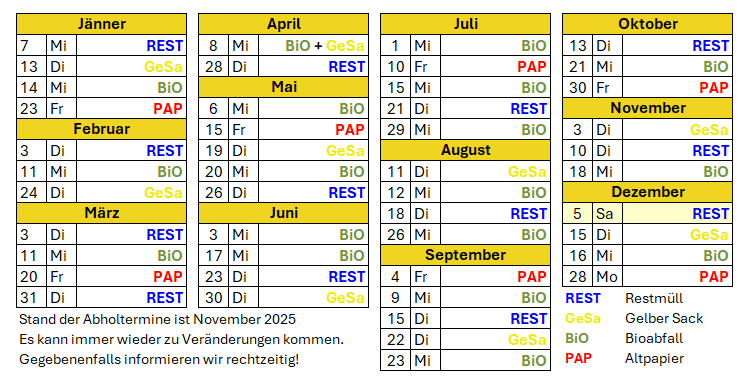Die Termine für die Abholung der Mülltonnen finden Sie auch im Kalender. Bitte einfach >hier klicken<