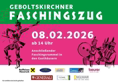 In Geboltskirchen findet am Sonntag den 8.2.2026 wieder der traditionelle Faschingszug statt. Veranstaltet wird dieser Umzug von der Union Geboltskirchen.