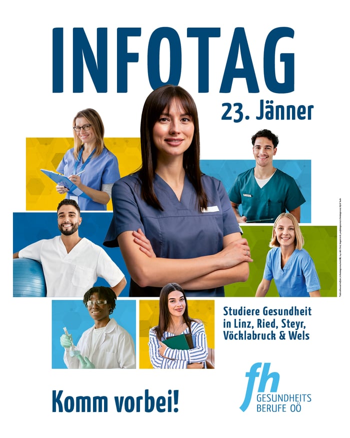 Die FH Gesundheitsberufe OÖ lädt herzlich zum jährlichen Infotag ein. Am 23. Jänner 2026 zwischen 9:00 und 16:00 Uhr können Interessent*innen
